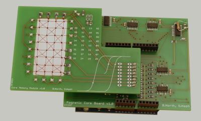 Building a core memory shield was a great learning experience and a lot of fun, so we thought it would be worth writing up some details for anyone else who might like to do something similar. As well as the report, we provide all the resources (EAGLE files, gerber files, parts list, etc.) necessary to build this Arduino shield.